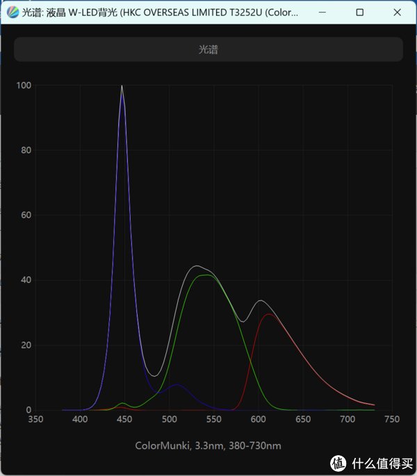 显然,这台显示器的光谱特征符合WLED光源的特征。